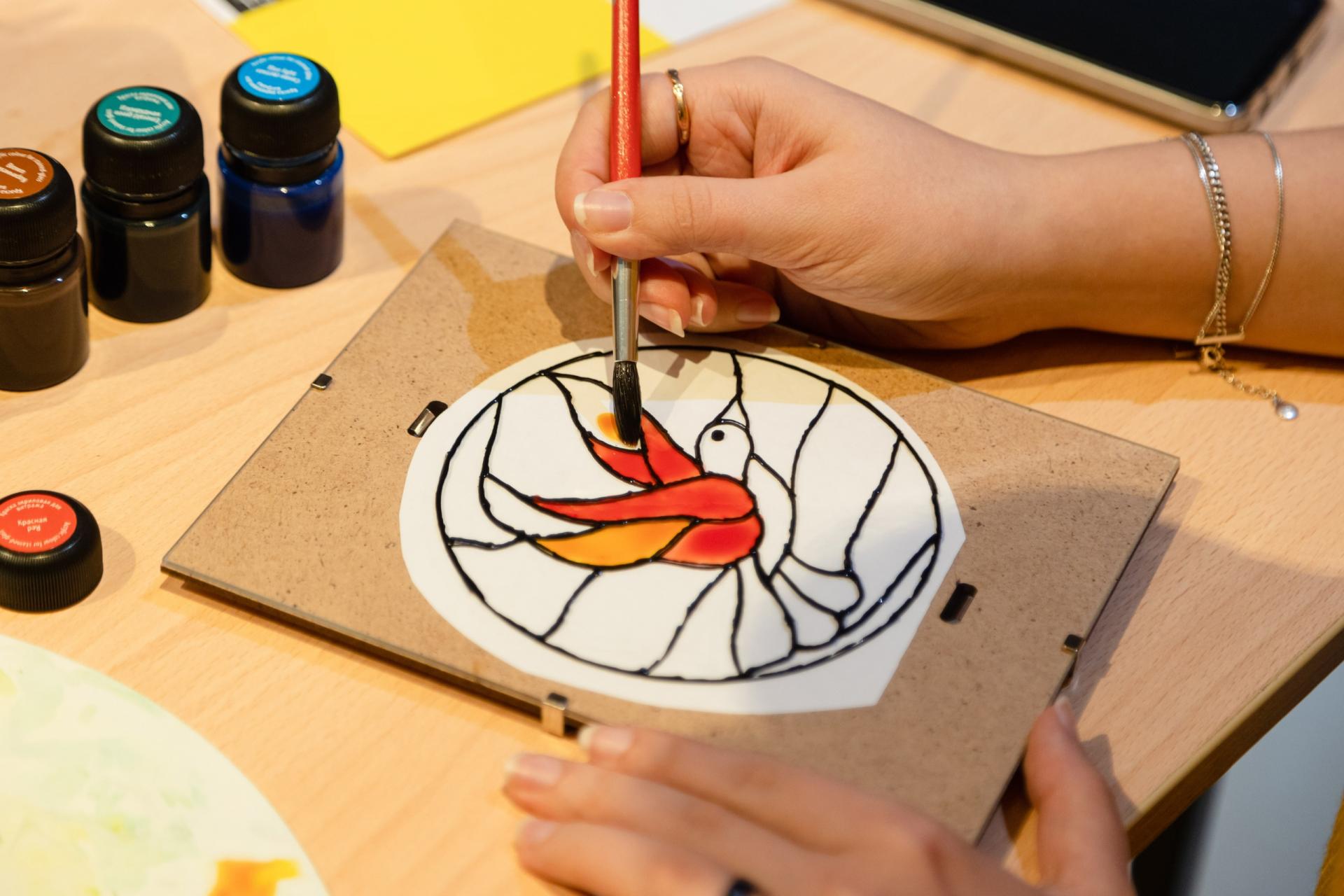 Для того чтобы создать собственный шедевр, не нужно иметь какую-то специальную подготовку. Достаточно подобрать подходящий эскиз, взять основу, краски, ну а вдохновение придет само собой. На мастер-классе участники познакомятся с референсами знаменитых витражей и создадут миниатюрный вариант росписи на стекле.