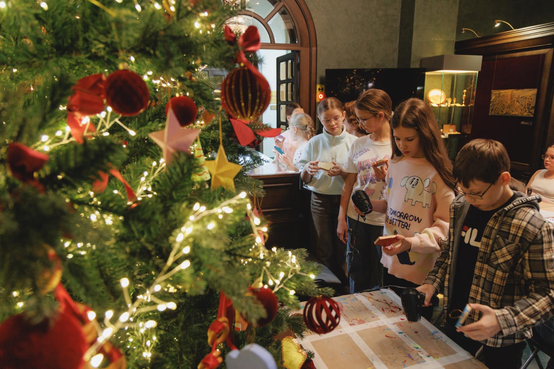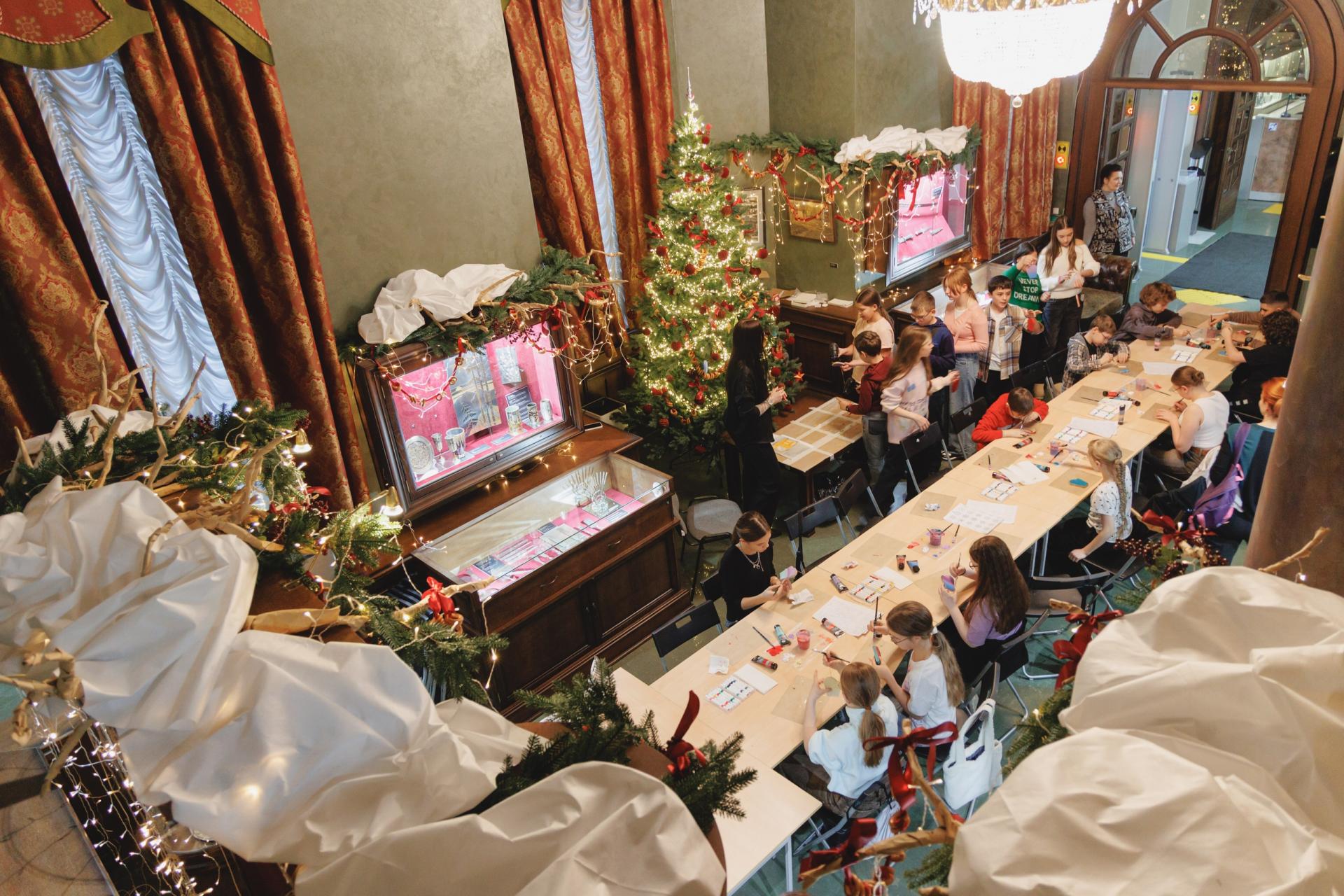 Продолжением экскурсии становится творческий мастер-класс. После прогулки по залам ребята расписывают новогоднюю игрушку из папье-маше, вдохновляясь увиденными пейзажами — зимним лесом, светом заката, движением воды или сиянием неба. Так искусство выходит за пределы музейных стен и превращается в личный опыт, который можно унести с собой.