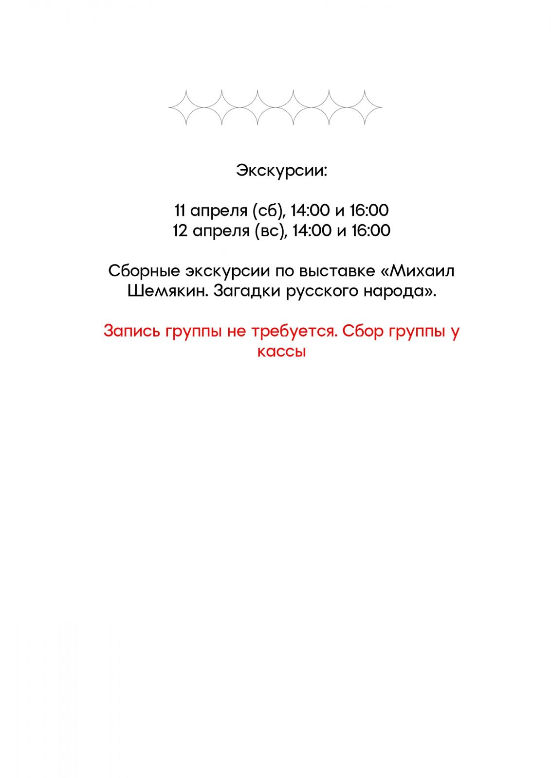 Сборные группы на выставке «Михаил Шемякин. Загадки русского народа». Сбор группы у кассы. Необходима регистрация по телефону