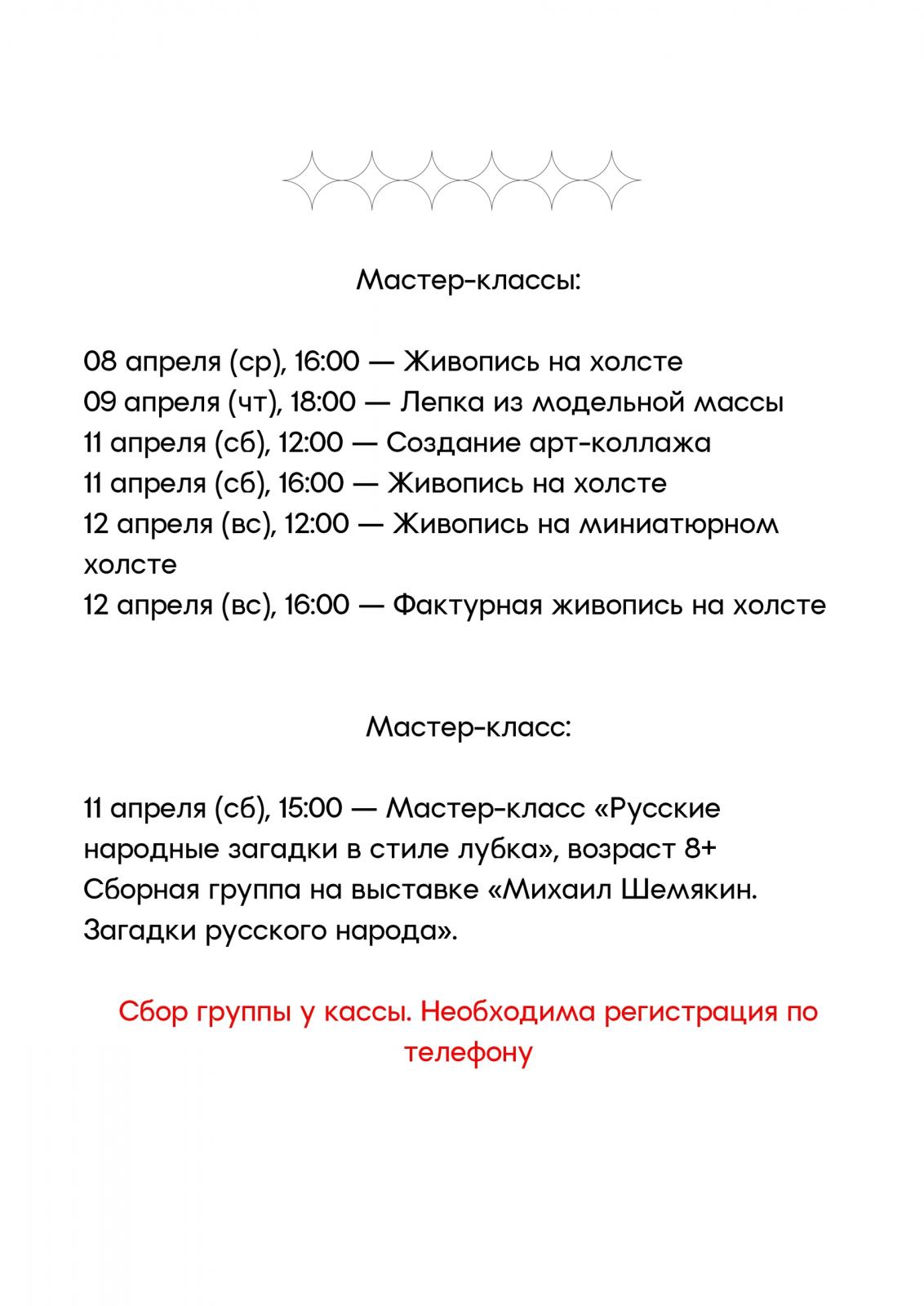 09 апреля (чт), 18:00 — Лепка из модельной массы. Купить билет: vk.cc/cNSkxV