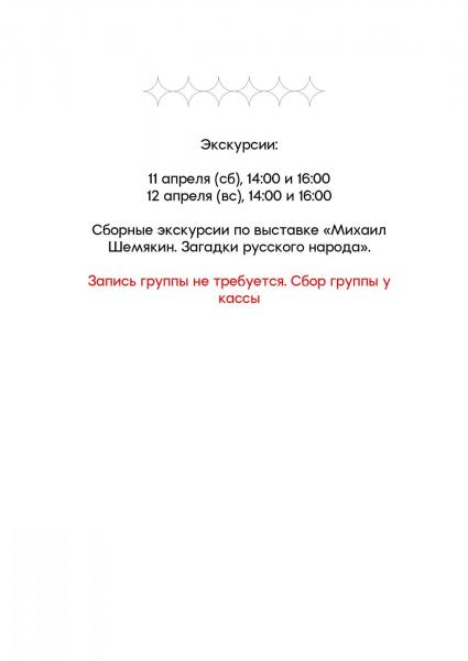 Сборные экскурсии по выставке «Михаил Шемякин. Загадки русского народа». Запись группы не требуется. Сбор группы у кассы