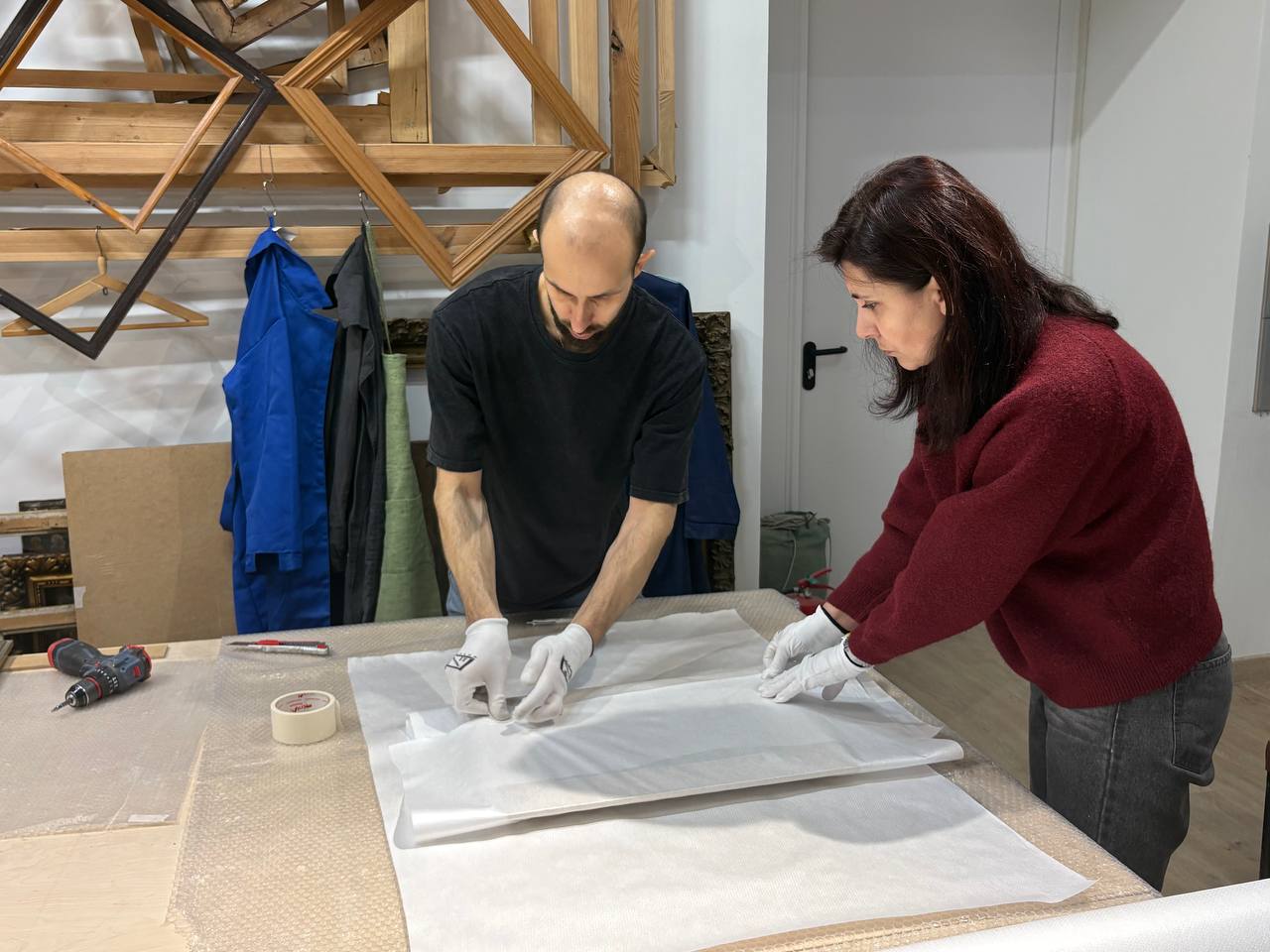 Для отправки в Омск картины прошли необходимую подготовку: специалисты музея тщательно упаковали произведения с соблюдением всех требований по транспортировке музейных предметов, чтобы обеспечить их сохранность в пути.